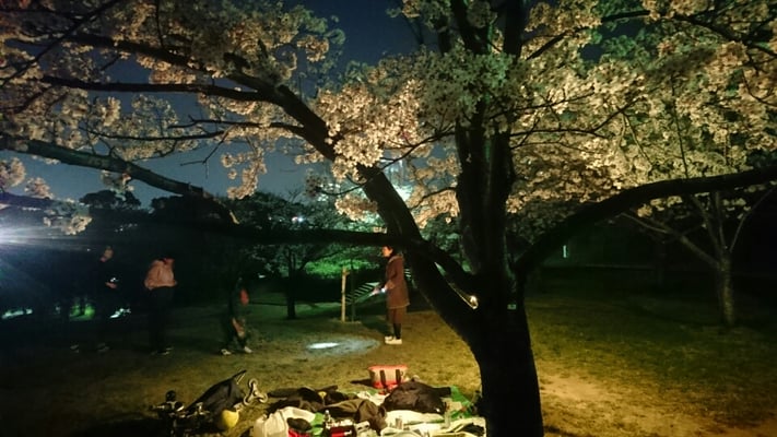 週末は、近所の公園に行き、家族で夜桜のお花見を満喫!